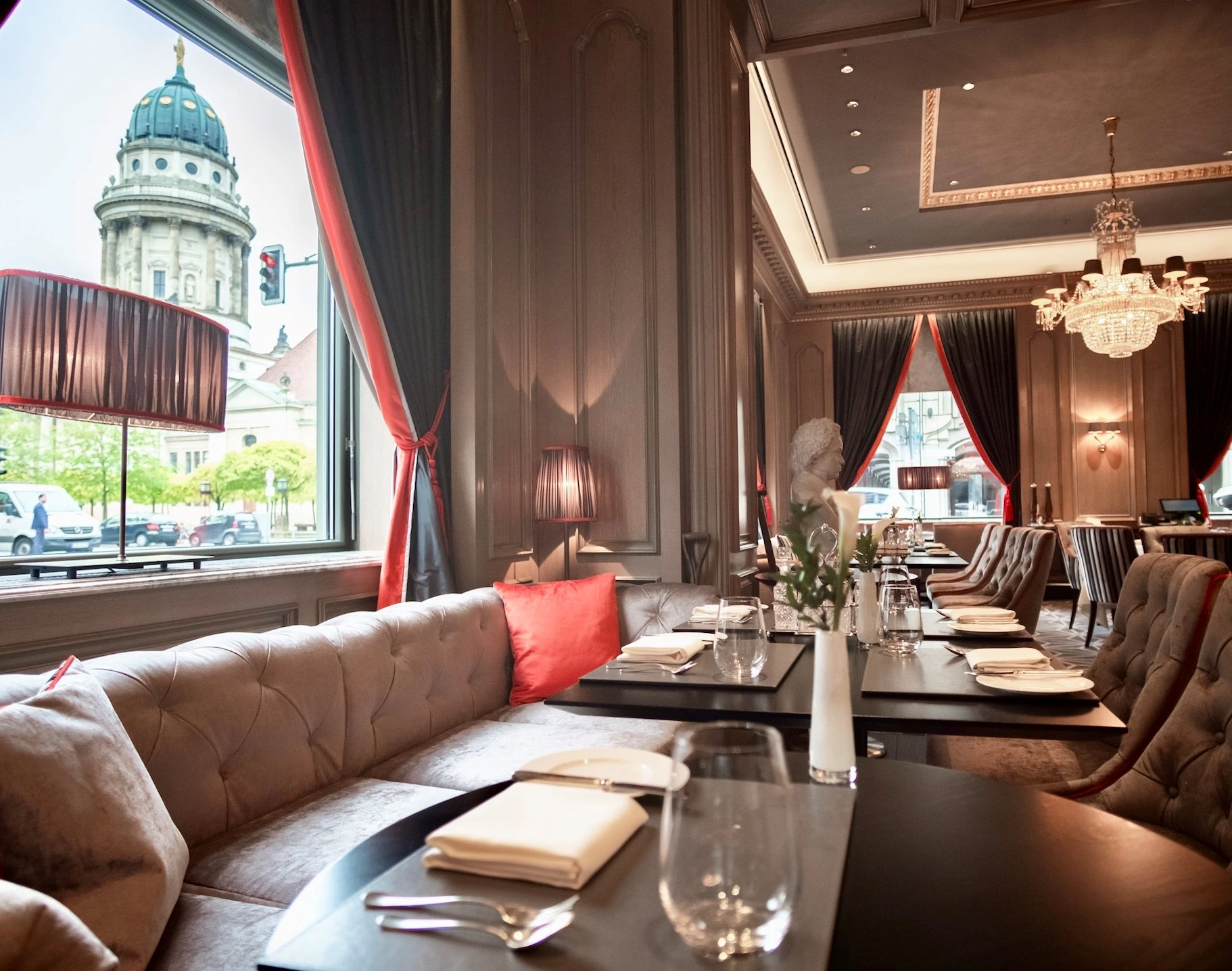 The unimpressive exteriorbelies the old world opulence within.Regent Berlin feels like it has been a part of Berlin’shistory since the glory days of the German Empire. Yet, this former Four Season went through a massive renovation onlybecoming a Regent hotel in 2004. The lobby is filled with antiques and a grand piano, the perfect place for a high tea lesson. The in house Tea Academy teaches the do’s and don’ts of proper tea handling by a master. This address has been famous since 1812 when the first incarnation of the famous Lutter & Wagner restaurant opened on this corner location. It was the go to place for generations. Bismarck, Kaiser Wilhelm I, Josephine Baker and Marlene Dietrich all were guests. The original building was flattened during WWII, a hotel went up in the early 90’s. The glamour of this illustrious history is reflected in the current décor. Rooms are large, decorated in classic, simple Biedermeier style. Every bathroom has both a tub and a walk in shower, many have spectacular views. Regent Berlin’s acclaimed restaurant, Charlotte & Fritz has collaborated with Veuve Clicquot to create a 4 course champagne menu served at a unique handmade table… book in advance for a true special occasion within this classic 5 star haven.