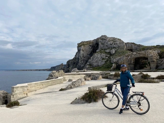 Favigana island – Situated off the Northwestern coast of Sicily, Favigana is a little island belonging to the Egadi islands. We travelled there by Catamaran but be aware, you cannot take bikes on the Catamaran. Bikes can only be taken on the ferry which doesn’t have daily service to the islands. Travel time is approximately 20 minutes. You can rent bikes locally on the island and our B & B arranged this for us when we arrived. The island is mostly flat and very easy to get around in a few hours. The waters surrounding this little island were crystal clear and very beautiful and it’s one of the best places to try the couscous dishes of the region. Favigana is also know for their red Tuna which is an important industry to the island, and you can sample this fresh and local fish in the restaurants on the island.