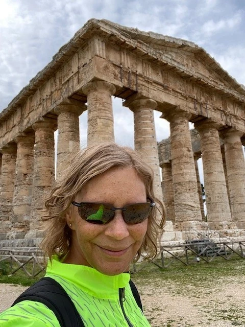 - Wear a brightly colored cycling jacket – we chose a bright yellow cycling jacket. It’s easier for the local drivers to see you. Drivers in Sicily are very good and are very used to seeing and avoiding cyclists.