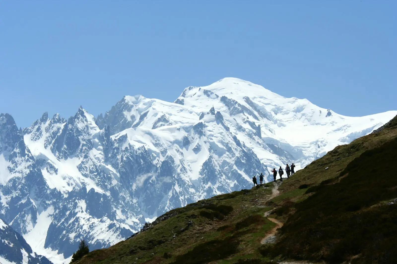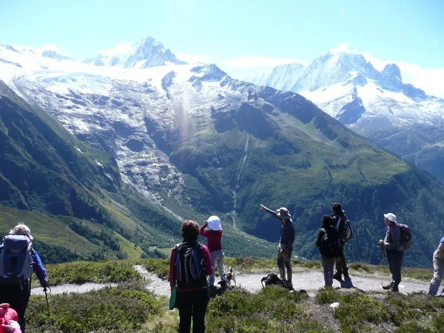 Day 2 Drive to the head of the Chamonix Valley; walk to Switzerland via Les Bonhommes and the Col de Balme; descend back into France passing Chalets de Balme. Meals included: Breakfast, Lunch, + Dinner