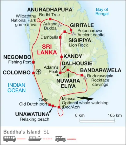 The Buddha's Island tour is a comprehensive tour of the 'Pearl of the Indian Ocean' and covers Sri Lanka's many highlights at a relaxed pace. Uncovering ancient cities, rock carvings and gilded temples, you will discover its rich Buddhist history and culture. Other highlights include the spectacular Hill Country, wildlife-filled national parks and an idyllic tropical coastline, where we enjoy some down-time. Along the way, you will be welcomed by generous hospitality and friendly faces.
