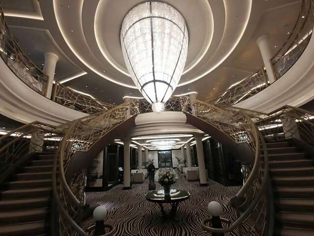 Embarkation was straight forward at the Los Angeles Cruise Port (about 25 mins south of LAX). The minute we got onboard we were greeted by a line of welcoming staff and handed a glass of champagne. You instantly saw the huge crystal chandelier hanging from the ceiling and my immediate thought was WOW!