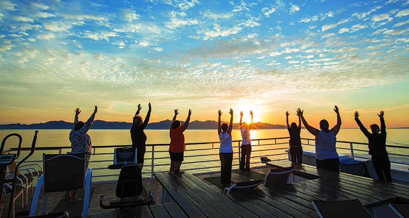 - Beach and on-deck yoga; walking meditation