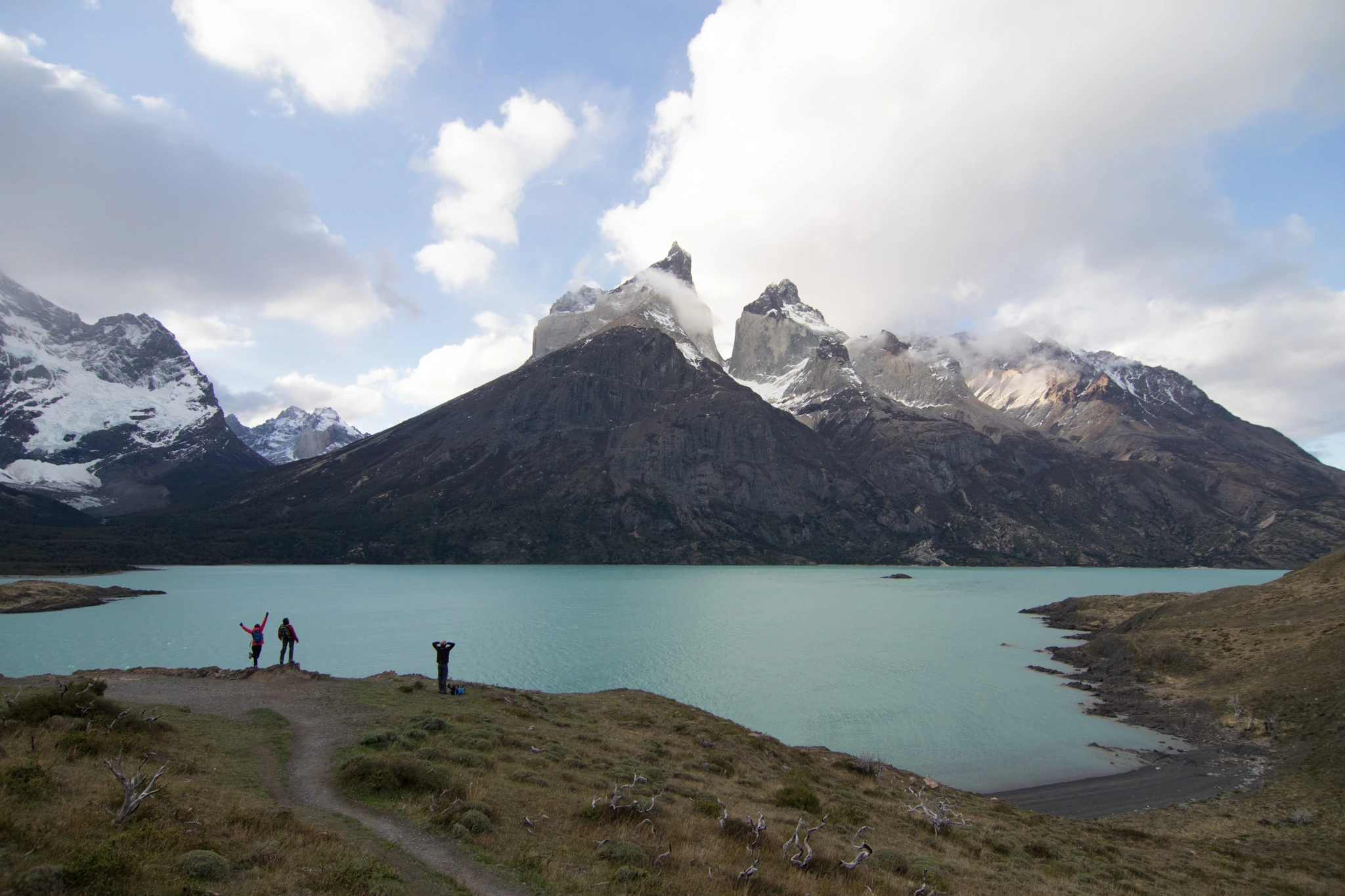 - After a tough uphill climb, the Towers eventually come into full view, rising majestically before us, with the glacial lake visible below. Is there any better place in the world to have lunch?